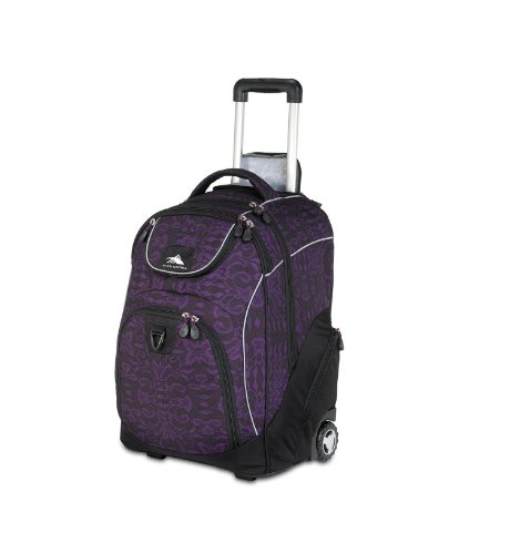 Ease your burden with the High Sierra Powerglide wheeled backpack, perfect for the serious student. Its large, multi-compartmented design features a roomy main zippered compartment with a cushion zone padded (17 laptop sleeve, an organizer and media pocket, a zippered pocket, and several open pockets for quick access. It also boasts an easy-access zippered accessory compartment with headphone port and zippered side pockets for water bottles or other necessities. The expansive and versatile High Sierra Powerglide converts easily into a comfortable backpack with contoured, adjustable Vapel mesh shoulder straps and a zippered, paneled back panel. Perfect for hauling heavy loads across campus or across townCustomer Reviews